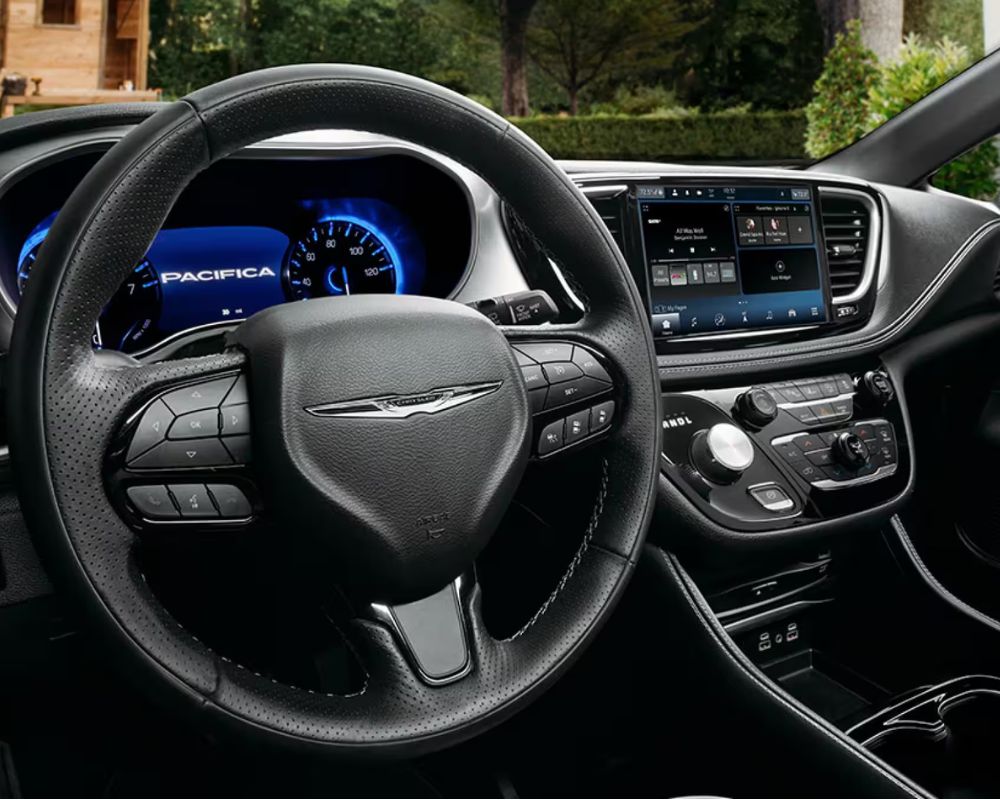 The 2024 Pacifica stands out with its bold and sleek exterior design. The signature diamond-styled 3D grille, LED headlamps, and clean lines create a sophisticated look that turns heads, whether you’re parked in downtown Hamilton or driving along the Escarpment. Available in a range of eye-catching colours, the Pacifica offers a style that’s as distinctive as it is functional.